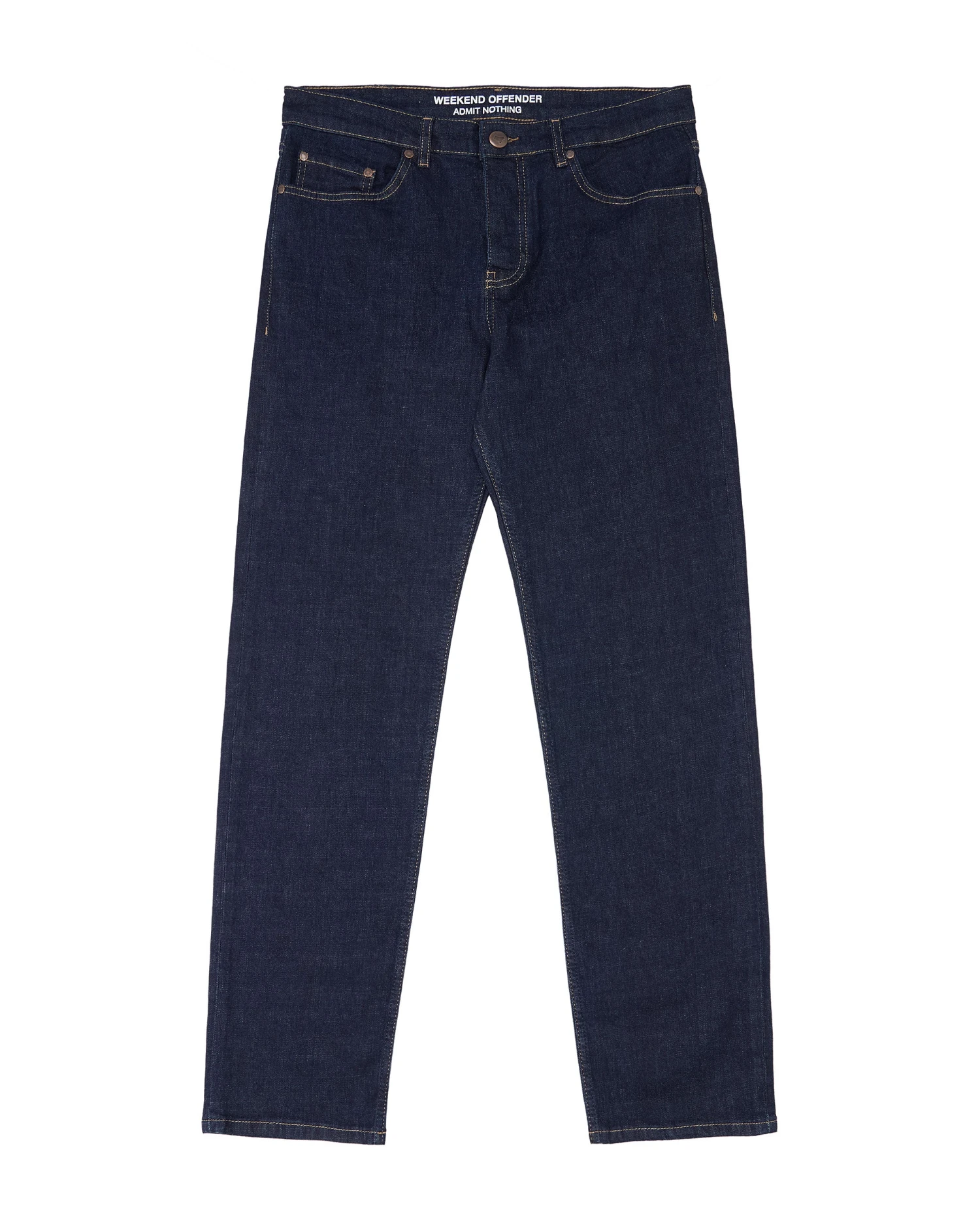 High quality denim spun, dyed and woven in the famous ISKO denim mill. Carefully constructed with durable thread and reinforced with WO metal hardware. Traditional dark indigo, rinsed to soften. A classic cut, maintaining a straight fit from the hips to a looser ankle.