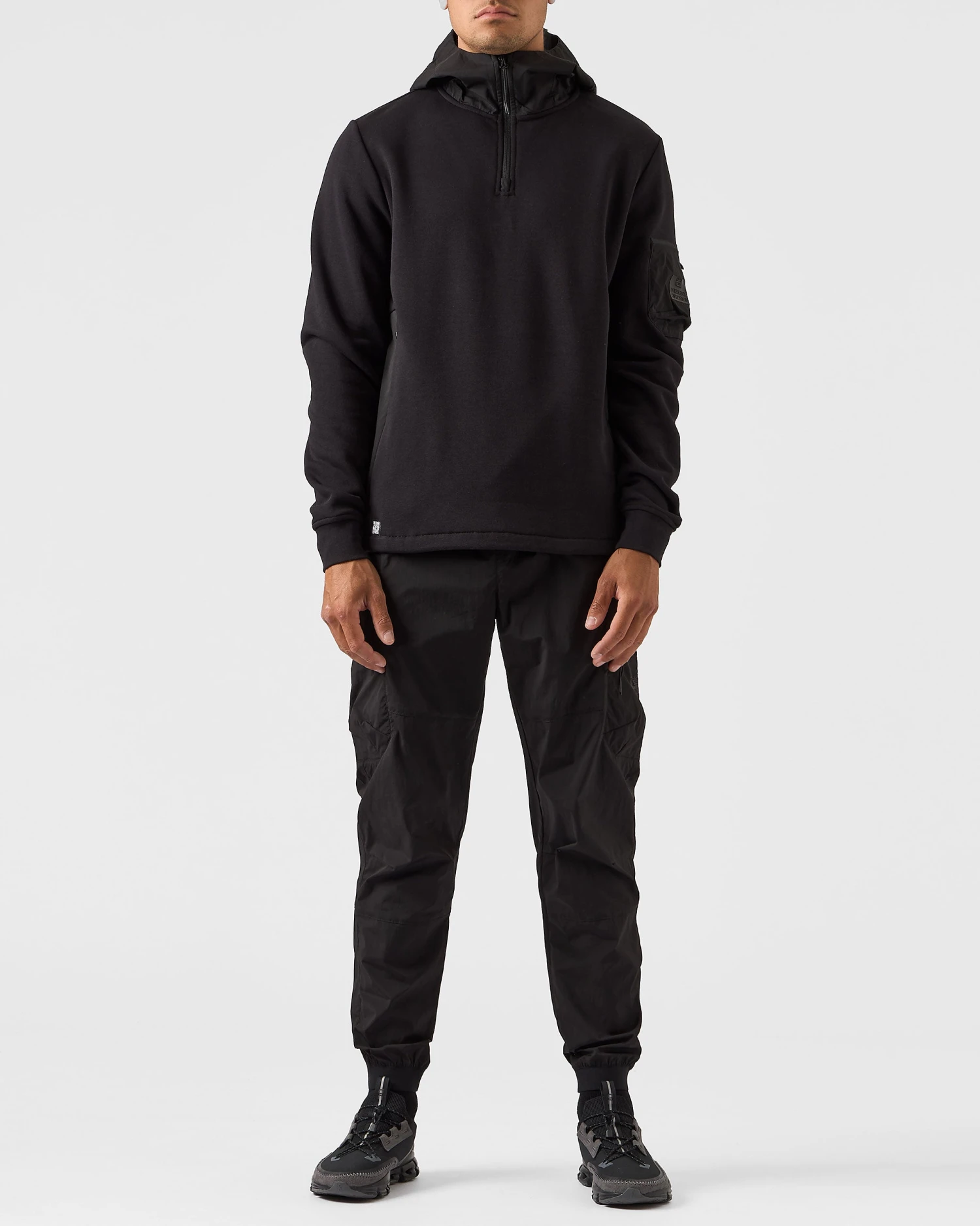 ▪ Angled overlay side panels with large contrast invisible zip pockets