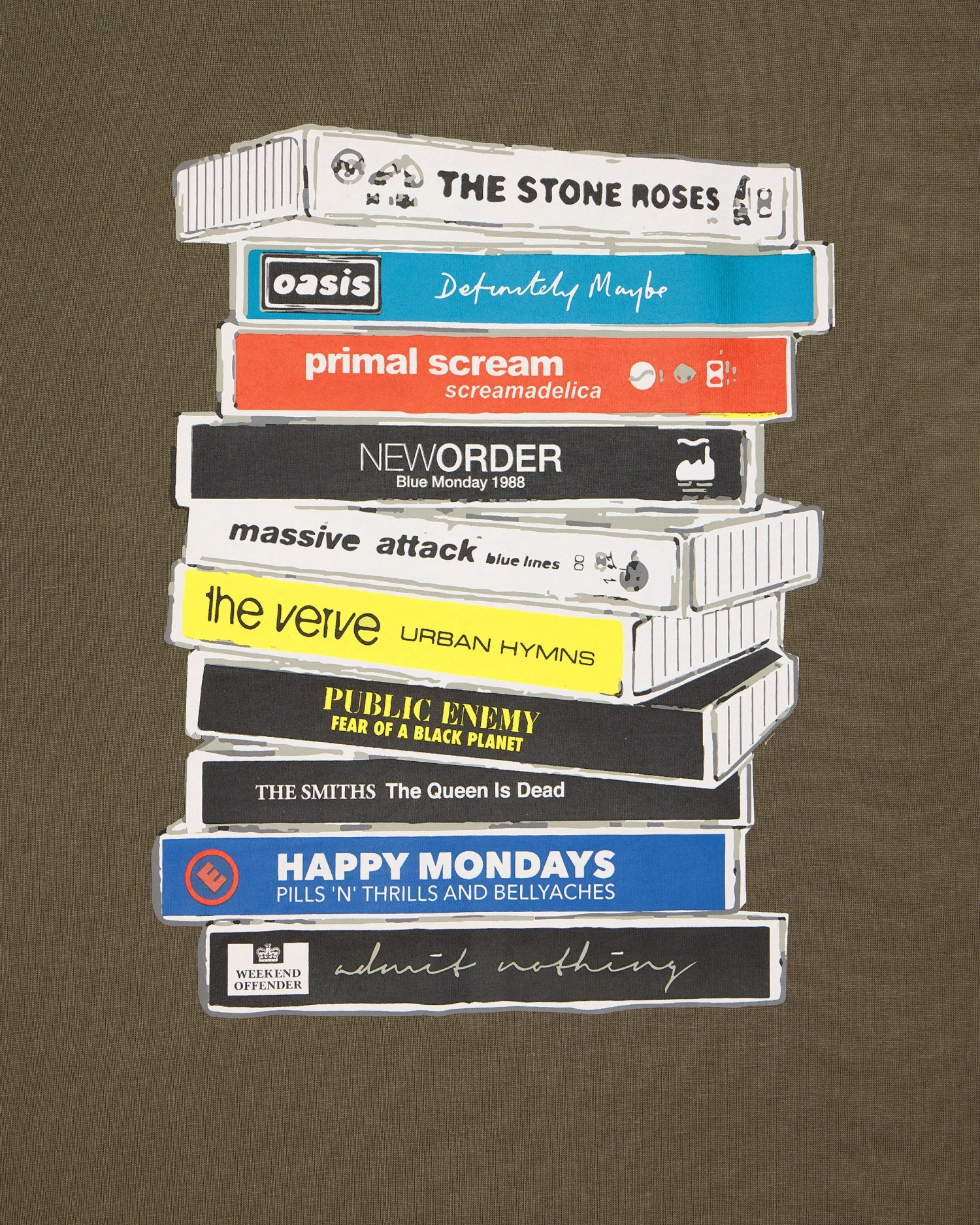 Graphic tee featuring some of our favourite albums in cassette form.