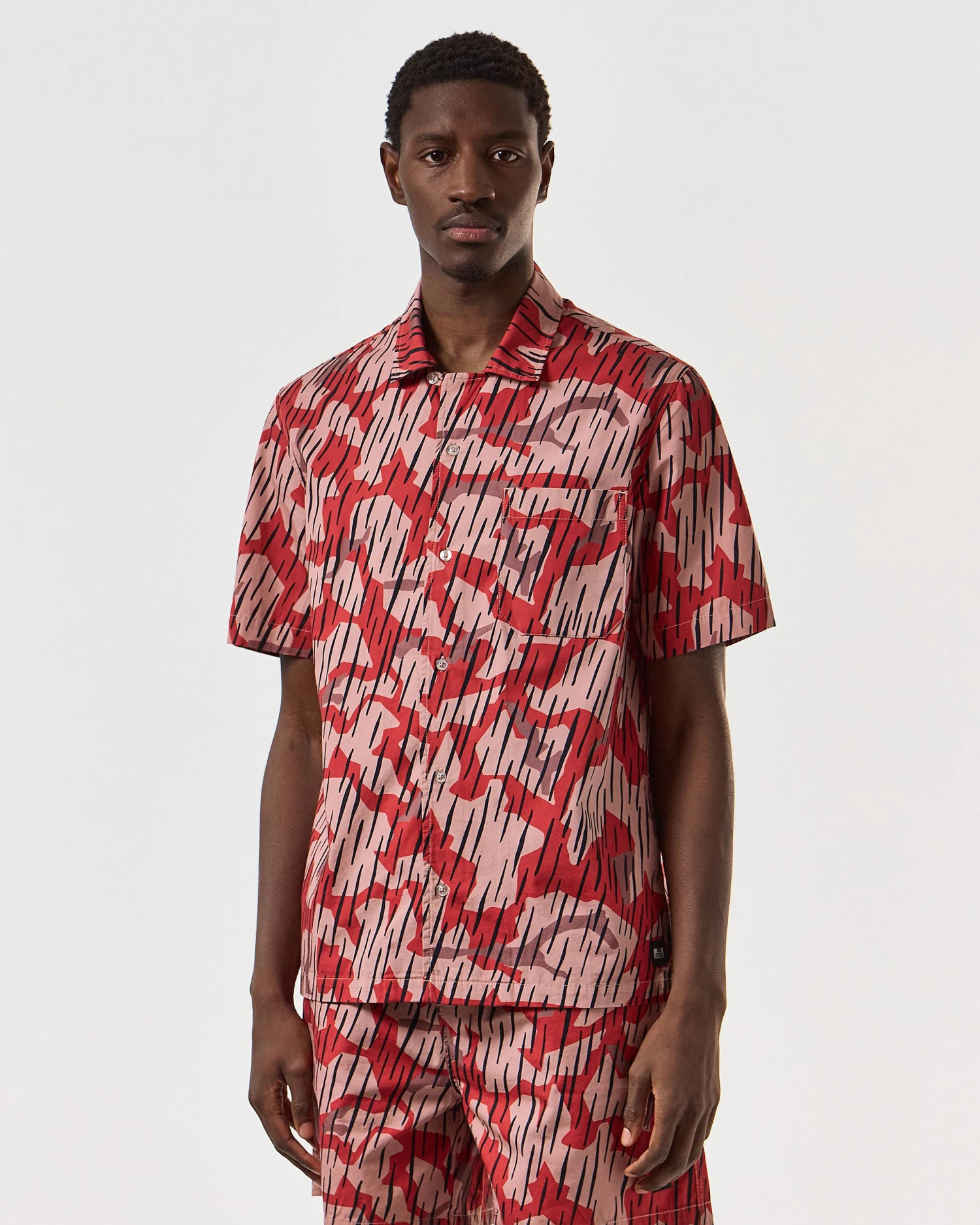 Summer shirt made from 100% woven Cotton poplin screen printed with our own disruptive rain camo print.