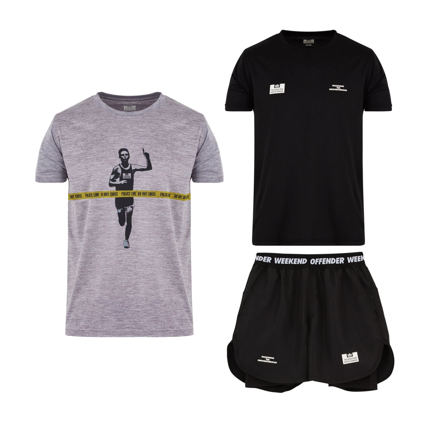 ▪ Grey T-Shirt, Black T-Shirt & Black Shorts